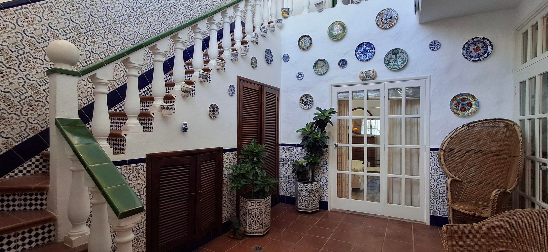 Este patio central, soleado y con mucho encanto, conecta ambas plantas y es uno de los grandes atractivos de la vivienda.